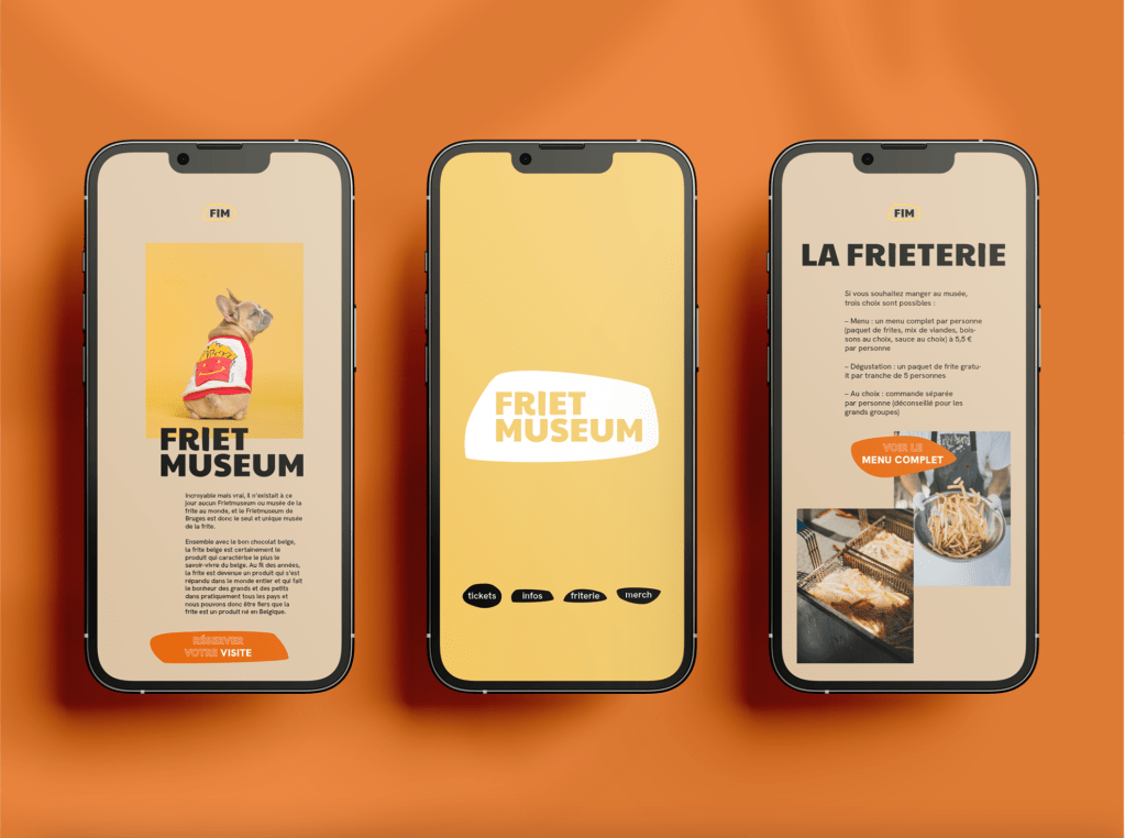 Le Frietmuseum est un musée unique en Belgique, mais son ancienne identité ne reflétait pas son originalité. J’ai repensé son univers visuel en m’inspirant de l’ancien logo : couleurs issues d’ingrédients réels (ketchup, mayo…), formes simples et chaleureuses.